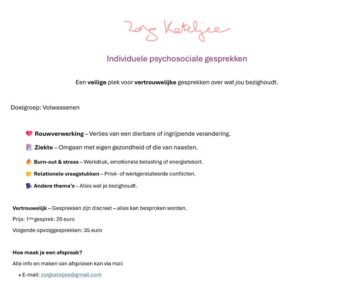Aanbod: individuele gesprekken en groepsgesprekken